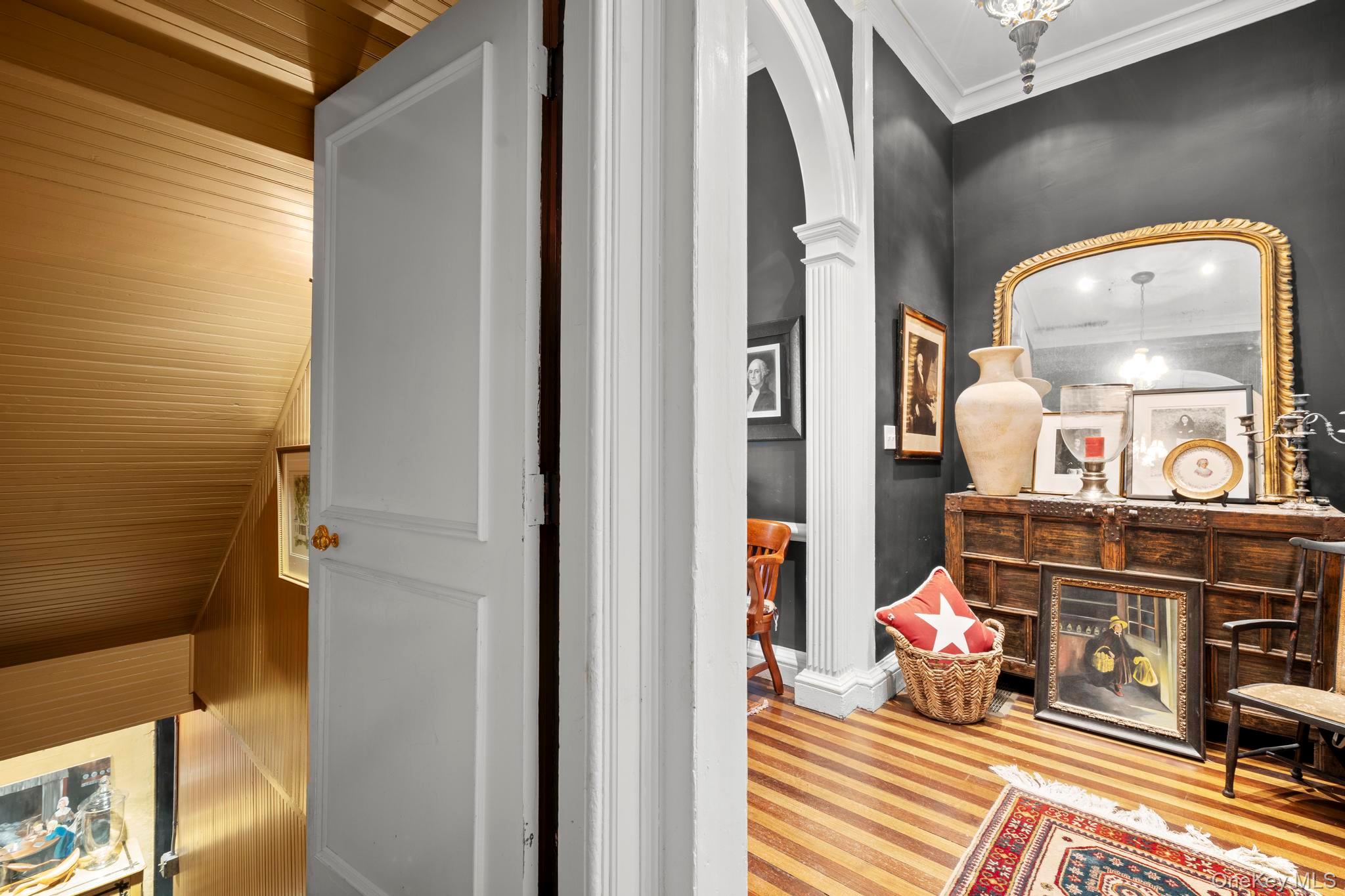 MUST SEE!! Grand colonial historic antique built in 1799, set on 1.2 acres off Historic Litchfield Green. Moments from iconic downtown Litchfield, offering approx 6,783 SqFt. This home boasts 6 bedrooms, 5.5 full baths, 7 fireplaces & sweeping decks. Fabulous stone entry welcomes you to an impressive 29' x 6' foyer showcasing exquisite architectural detail, millwork, crown molding & curved archways. Timeless & cinematic. 1st flr offers 12f+ ceilings, custom stained oak flrs, gracious great room & formal living room w/ fireplaces & an adjacent study with access to full bath & rear porch. The grand eat-in kitchen is designed for gatherings & includes two dishwashers, gas oven/range, Sub-Zero refrigerator, abundant natural light, a back staircase leading to a second-floor living room & 1/2 bath. Large formal Dining room off kitchen. The expansive primary suite wing spans 4 rooms, a private walk-in closet room, sitting room w/ fireplace, bedroom w/ fireplace, & a spa-like bath with dual sinks, tile shower, & separate water closets. 2 more bedroom en-suites complete the wing. 3rd flr offers private staff quarters w/ 3 bed 1 full bath w/ secluded staircase to each flr. Covered deck overlooks sun filled backyard & barn, a clean walk-out basement w/ poured concrete floors, 2-car garage, walk-out patio. Perfect home for hosting guests & activities . Minutes from shops, stores & a variety of restaurants. close to bantam lake. 2 hrs to NYC. A setting that feels out of storybook. WOW
